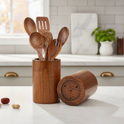 Les ustensiles sont utilisés en permanence. Les ranger dans un tiroir profond ou mal organisé casse le rythme en cuisine. Un pot à ustensiles cuisine agit comme un bloc vertical, permettant de regrouper les ustensiles essentiels sans surcharger l’espace.